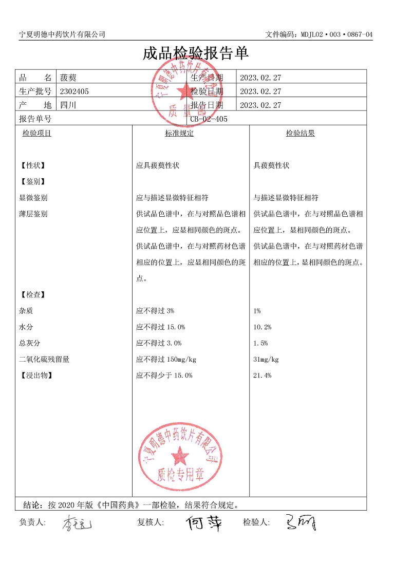 2020年質(zhì)檢報告